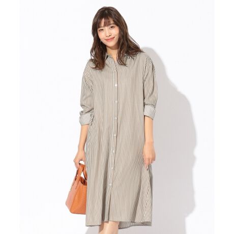 ゆったりとしたフレアラインが女性らしい印象に写してくれるシャツワンピース。