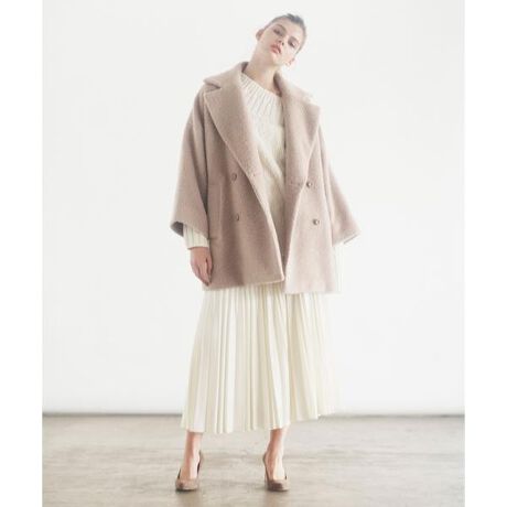 ・毛足の長いシャギー素材で仕立てたハーフコート