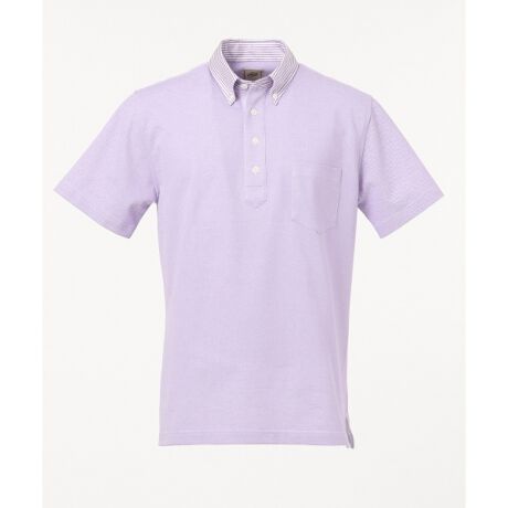 キャンディーストライプのオックスを衿に施したボタンダウンポロシャツ。