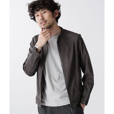 見た目、手触り共に高級感のあるフェイクスウェードを使用したシングルライダース。裏地のない仕様の為、春先もサッと羽織れる軽くて万能なブルゾンに仕上がっています。袖はラグランスリーブ仕様になっており、タイト過ぎず動きやすいデザインに。春秋はライトアウターとして、冬はインナーとして長いシーズンで着用可能なアイテムです。