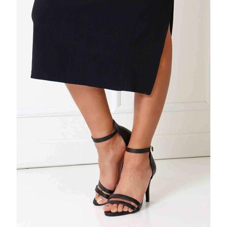 アンクルストラップがオシャレで華奢見せしてくれるピンヒールサンダル。