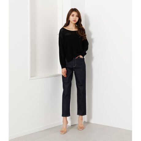 新しいシルエットのストレートデニムパンツ。ヒップから太ももにかけてゆったりとさせつつ、裾は程よく絞り女性らしさを残しながらもカジュアルに崩したStylingが楽しめる、そんなシルエットに仕上げました。微ストレッチデニムを使用して、履き心地も◎RIBニット等、TOPSはFITしたものを選ぶとより女性らしく着用出来ます。足元はPPS等ヒールのあるものがお勧めですが、フラットやスニーカーも合わせられます。