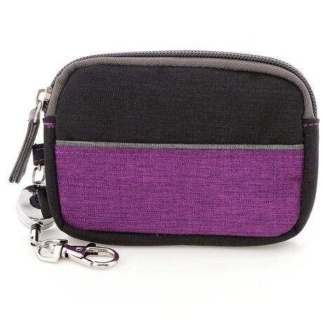 はっ水加工を施したツヤ感のある杢調ポリエステルを配色使いにしたコインポーチです。
