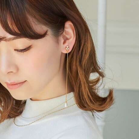 チェーンの先にはあえて真ん丸ではないドロップパールをセットして、ナチュラルな雰囲気に仕上げました。