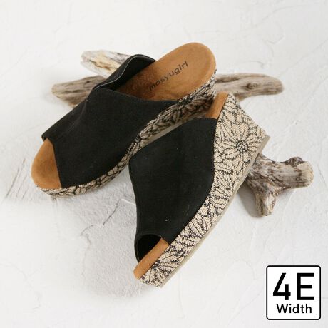 マシュガールの【4E幅広・大きいサイズ】ふわふわクッションのVカット屈曲ウェッジミュール