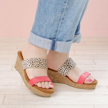 【4E幅広・大きいサイズ】ふわふわクッションのダブルベルト屈曲ウェッジミュール