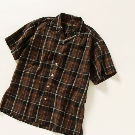 こだわり抜いた「CLEVE」の別注マドラスチェックオープンカラーシャツ。