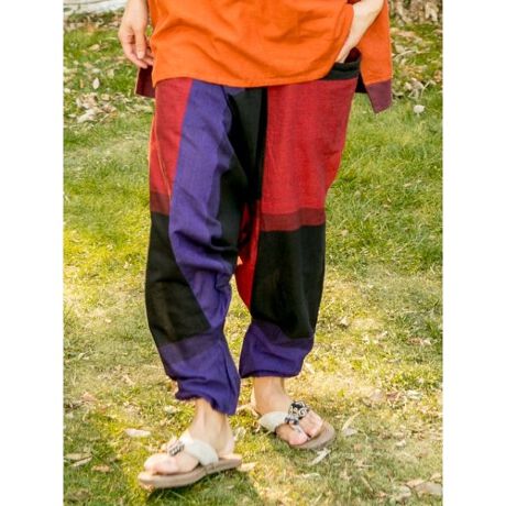 涼やかなネパールコットン素材で、夏コーデにぴったりなマルチボーダー柄サルエルパンツ。動きやすく、すぐに乾きやすいのが特徴。男女問わずユニセックスでご着用いただけます。