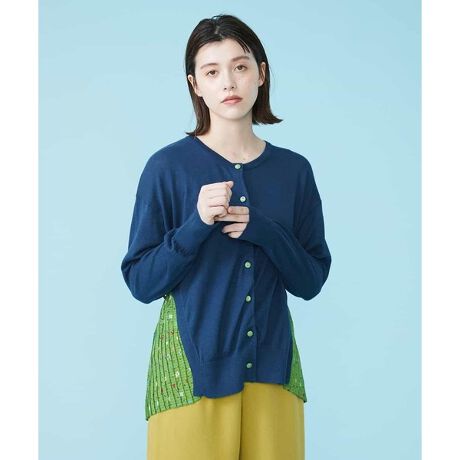一見シンプルながら、背中にシフォンプリーツをドッキングしたホコモモラらしいカーディガン。