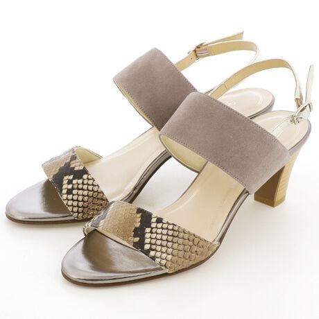 つま先部分は取り入れやすいパイソン柄と、甲の部分はシルキー素材。異素材コンビが新しく新鮮な足元に仕上げます。