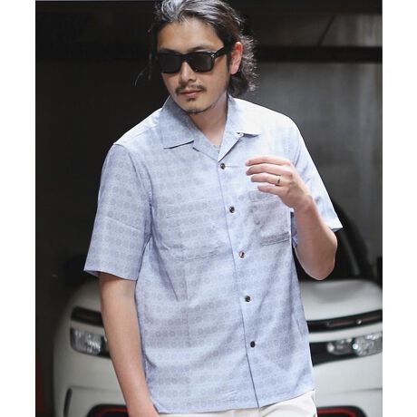 小紋柄オープンカラー半袖シャツ