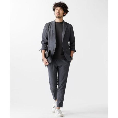 シャツ感覚で着れる軽量感と、通気性をもった素材を掛け合わせた”ダメリーノ”シリーズの新作セットアップ。素材にはポリエステル糸を強撚し、肌離れの良さと清涼感のあるタッチに仕上げたナノ・ユニバース別注素材を使用。ストレッチ性が抜群で速乾性にも優れた、夏場にも嬉しい着心地を実現しています。ジャケットはパッチポケット、パンツはイージーパンツ仕様になっており、夏でも単品で気軽に着用できる優れもの。肩肘張らずに決まる、これからの時期に嬉しいアイテムです。