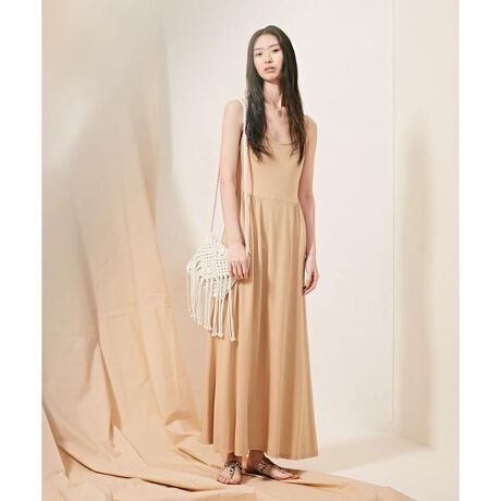 好評のコラボ#Hinanouniverseからオーガニックコットンをふんだんに使用したタンクトップドレスが登場。リラクシーなアイテムながら、センシュアルな襟ぐりの開きやギャザーを寄せた立体的なシルエット等、程よく力の抜けた女性らしさに拘ったデザイン。カップ付きで1枚で楽に着こなせます。