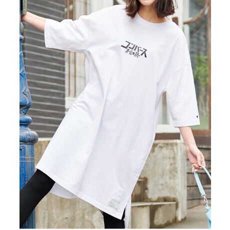フロントにカタカナ「コンバース」をプリントしたドロップショルダーのワンピース。