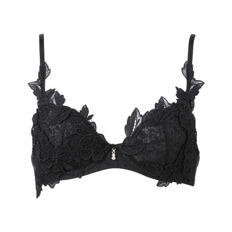 ゆっくりとその花弁をひらき、優艶に咲き香るローズのように。・バストボリュームを脇から中央へ寄せ、きれいな谷間をつくるプッシュアップタイプ・(C)80サイズと(D〜F)カップは、幅広フラットワイヤーを使用・(C〜E)80サイズとFカップは、樹脂ボーンを使用・花芯を立体的に仕上げた、輪郭と細緻な格子のステッチのコントラストが美しいアップリケがポイント・アップリケにはラメ糸を使用・前飾りはスワロフスキー社製クリスタル付き・パッド受け有り/パッドなし