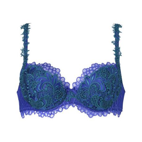 気泡がライティングで輝き、揺らめく様子を幻想的に描いて・まるみのあるシルエット・前中心の低いフロントプランジングタイプで軽やかなつけごこち・脇のボーンでシルエットをすっきりさせ、バックはストレッチチュールを使用し、ソフトなつけごこち・華麗なステージのきらめきを、気品のある光沢のサテンに刺繍をほどこした華やかなレースと、気泡が揺らめく個性的でモダンな印象のリバーレースの組み合わせで表現・パッド受け有り/パッドなし