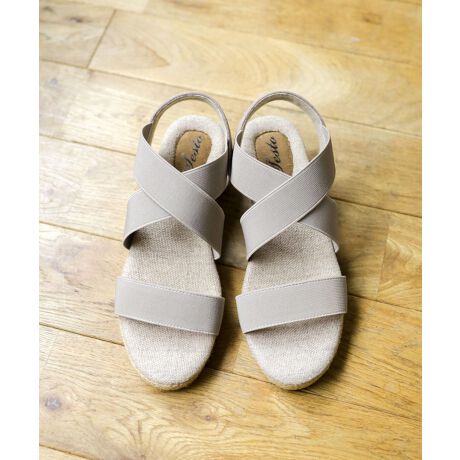 ゴムでフィットするので靴ズレしにくい3.5cmヒールゴムフィットサンダル