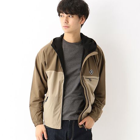 肩部分をリップストップ素材で切り替えたナイロン素材のシェルジャケットです。