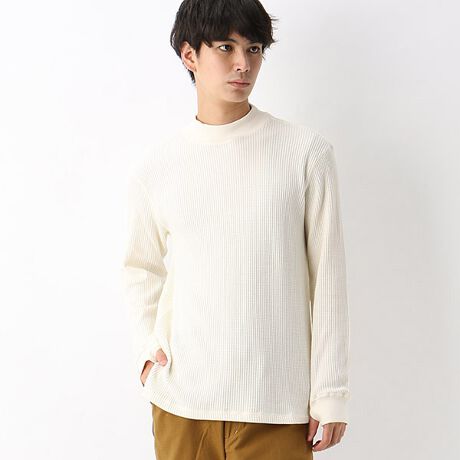 フワッと軽めに仕上げたワッフル素材を使った長袖Tシャツです。伸縮性と保温性に優れたワッフル素材は少し肌寒い時期のインナーにピッタリです。