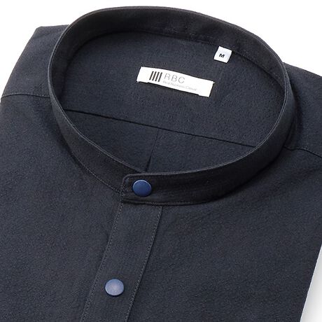 【衿型】バンドカラー【色・柄】ネイビー・シアサッカー 【素材】綿100%【商品特徴】バンドカラーは適度なカジュアル感があり、首元をすっきり見せ、Tシャツ感覚で着こなすことができます。一枚でもジャケットのインナーとしてもリラックス感がりどこか上品に決まります。シアサッカーで適度な凹凸とシワの風合いでカジュアル感があり、サラリとした感触で肌触りと肌離れが良く涼しくて快適な着心地が楽しめます。コットンパンツと相性がよく、ボトムアウトでもダぼつかない短尺仕様になっています。※洗濯ネットの不使用の場合⇒釦の破損や生地に毛玉ができる可能性がございます。※乾燥機を使用の場合⇒生地の縮みによるサイズの変化がおこる可能性がございます。※クリーニング店よりもご自宅での選択を推奨いたします。