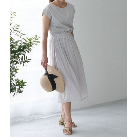 ウエストはギャザー使いで、すっきりシルエットながらイージーな着心地です。