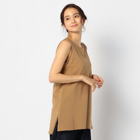 ルーズなシルエットが華奢見えしてこなれた雰囲気に。アームホールが開きすぎず、1枚でさらりと着るだけで今っぽく仕上がります。ラフに着用できるうえ、すっきり映えするのが嬉しいポイント。