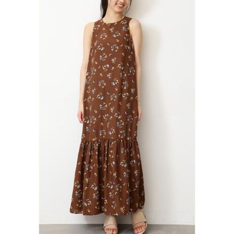 花柄ローギャザーマキシワンピース