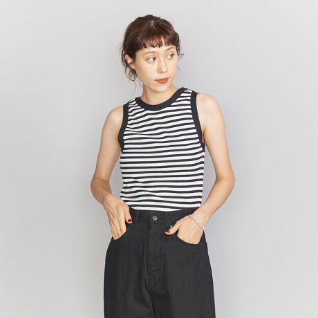 表情のあるコットンリブ生地で仕上げた、ノースリーブカットソー。