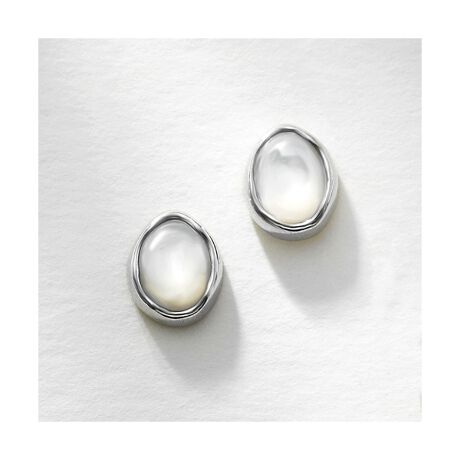 存在感のあるホワイトシェルのデザインが魅力的なワンポイントピアス。<br><br>揺らめくアウトラインで耳元に表情をつくります。<br>つるっとしたオリジナルカットを施したホワイトシェルがつややかに輝き、優しいニュアンスをプラス。<br>抜け間のあるバランス感が素敵な仕上がりです。<br>コーディネートを華やかにしてくれるデザインでボリュームがありながらも女性らしく軽やかなピアスです。<br><br>*限定商品につき、なくなり次第終了となります。<br>*テイクアップの商品は、日本の職人の手仕事により作られた Made in Japan です。<br>*天然石を使用しています。自然が生み出した世界にひとつだけの個性をお楽しみください。