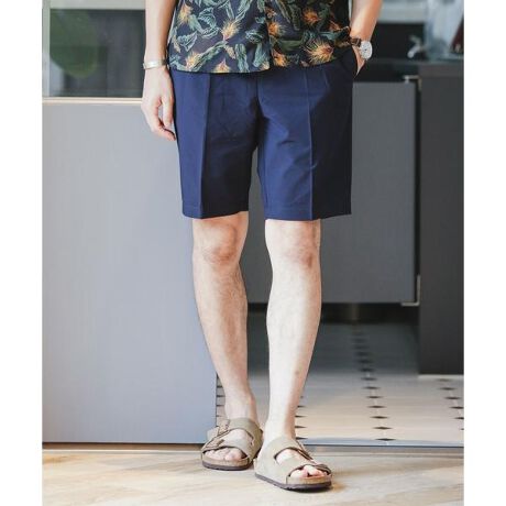 毎シーズンご好評頂いている吸水速乾性に優れたポリエステル素材のシアサッカーショーツ。 速乾性だけでなく、キックバックのある生地の為、動きやすく機能面が充実した1着。 ウエスト部分は後ろ半分にゴムが通されたイージー仕様ですが、ベルトループも付いたスラックスのようなキレイめなディテールで仕上げています。 上品な見た目と、動きやすく涼感のある穿き心地が、これからのシーズンに手放せなくなるアイテムです。