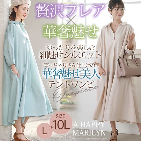 ハッピーマリリン(大きいサイズ)のゆったり贅沢な美人テントワンピース4318741011015[型番:431874]