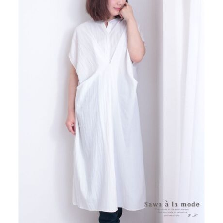 サワアラモードのXラインのタック入りロングワンピース レディース ホワイト マキシ丈 白 夏 サマー