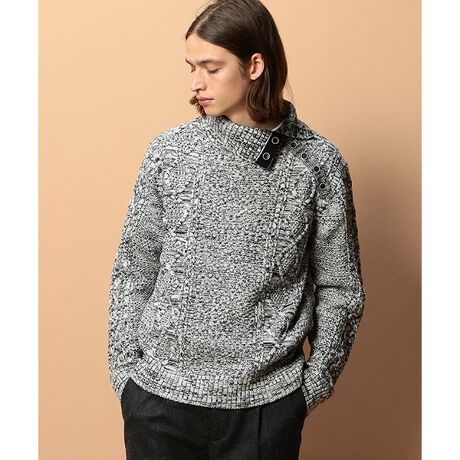 5GGケーブル編みドクターネック。タートルネックの変形型で、ネックのボタンを開け締めすることで首元のデザインを楽しんで頂けます。