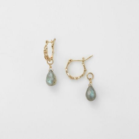【WEB限定商品】店頭では買えないWEB限定商品の中でも人気のピアスセットシリーズ。ニュアンスのあるラブラドライトとのシンプルな組み合わせは、どんなスタイリングにも合わせやすい万能アイテム。さりげなく揺れるピアスチャームは顔周りを華やかに、横顔を美しく見せてくれます。※繊細さを生かしたデザインの為、着脱の際は過度な負荷がかからないようご注意ください。※天然石や天然素材を使用しているものは、サイズ・色味・風合いの違いや、若干の傷、内包物の有無などに個体差があります。予めご了承ください。