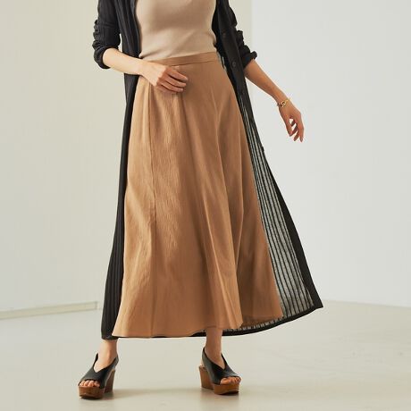 表情のある楊柳素材を使用したマキシ丈スカート。
