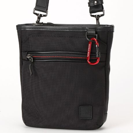 本体に付属しているカラビナはブランドを象徴するクロxアカのカラーコンビネーションにブランドロゴが入ったオリジナルのデザインです。