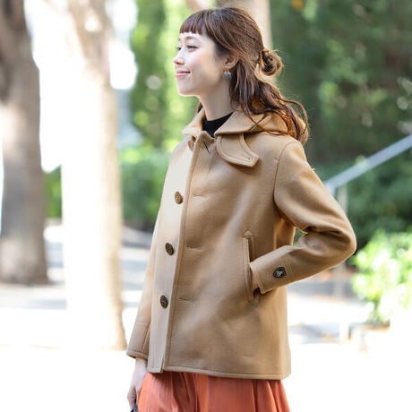 女性らしいショール衿や取り外し可能なフードなど拘りのデザインが人気の理由。左袖にはお馴染みの蜂ワッペンが可愛いアクセントに。スタイリングを選ばず幅広いコーディネートに合わせて頂ける万能アイテムです。