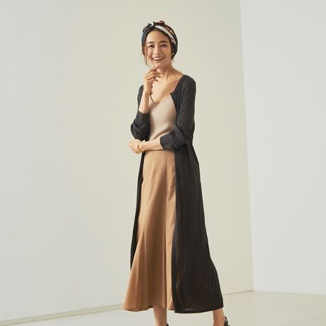 程よい透け感・光沢感のあるロング丈カーディガン。