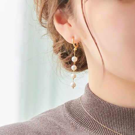 スプリングタイプのフープイヤリングは、まるでピアスのような見え感が魅力。