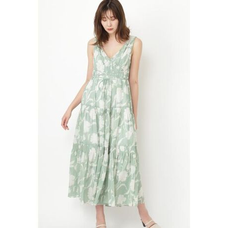リラックスムード満点なティアードワンピース。淡いカラーのシャドーフラワー柄が大人の女性にふさわしい一枚。シャーリングを肩とティアード切り替え部分にあしらった繊細なディテールも魅力です。華奢なウエストリボンは前後で結ぶことが出来るデザインです。深く開いたネックラインで抜け感をプラスし、タウンにも旅先にも涼しく着られます。※裏地付き