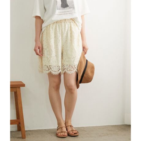 [型番:GDS5802]スカラップレースがガーリーな雰囲気のショートパンツの登場です。ウエストゴムで履き心地も◎。丈も短すぎないデザインが嬉しいポイント。・裏地あり※撮影時の光によって色の見え方が違う場合がございます。