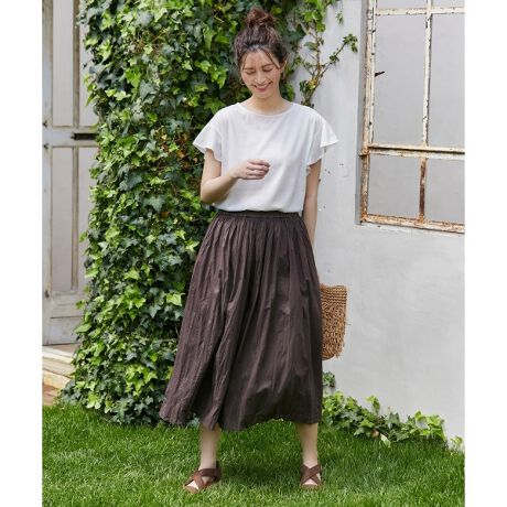 エニィファム(any FAM)の【おうち時間に】クリンクルコットンボイル パンツ。
