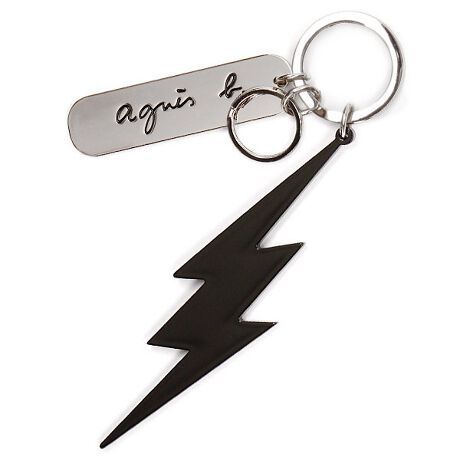 アニエスベーのアイコンのひとつ、エクレール(稲妻)モチーフとブランドロゴのメタルパーツのキーホルダー。