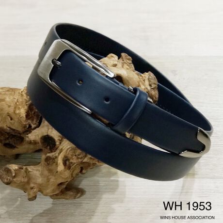 1枚の牛革を折りたたみ、内側で千鳥模様に縫い合わせた耐久性も高いベルトでもあります。