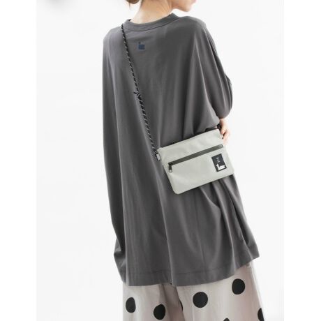 コンパクトなサイズ感のサコッシュです。前後ろ両方にファスナーポケット付き。小物や小銭もまとめられ、ちょっとしたお出かけに便利です。防水ファスナー使い。肩紐は調節可能です。