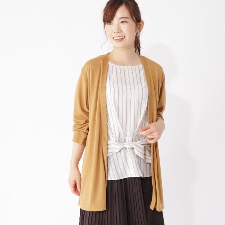 カーディガン×ウエストマークブラウスセット