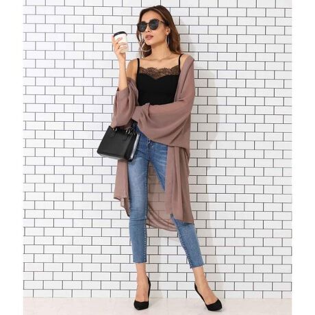 シンプルなコーディネートにも映え、透けすぎない大人のシアーカーディガン。