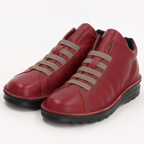 レザーシューズとスニーカーの要素がクロスオーバーした新感覚のテイスト。結ばないゴムヒモでほどけるストレスを解消!