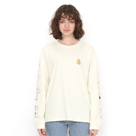[ (C) Ayako Ishiguro ] 袖口がリブタイプのロングスリーブTシャツ。少し肉厚の天竺を使用しています。フロントの左胸にはおめんねこがちょこんと刺繍で入り、両袖には猫火車、猫坊主などの化け猫たちがぞろぞろと列をなしているデザインです。「刺繍加工」「ご使用に関する注意」 ●この商品は染料の特性上、雨や汗などによる水濡れ、摩擦が加わる状況での使用により、色落ちや色移りする可能性がございますので、十分ご注意の上ご使用下さい。●洗濯の際は、他の衣類と分けて洗って下さい。また、洗濯後は時間を置かず、形を整え陰干しして下さい。※商品画像と実物では多少色味に違いがある場合がございますので予めご了承下さい。※発売日や販売状況は店舗によって異なります。
