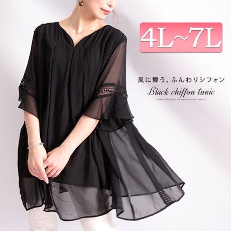 【4L-7L】シフォンチュニック 大きいサイズ レディース